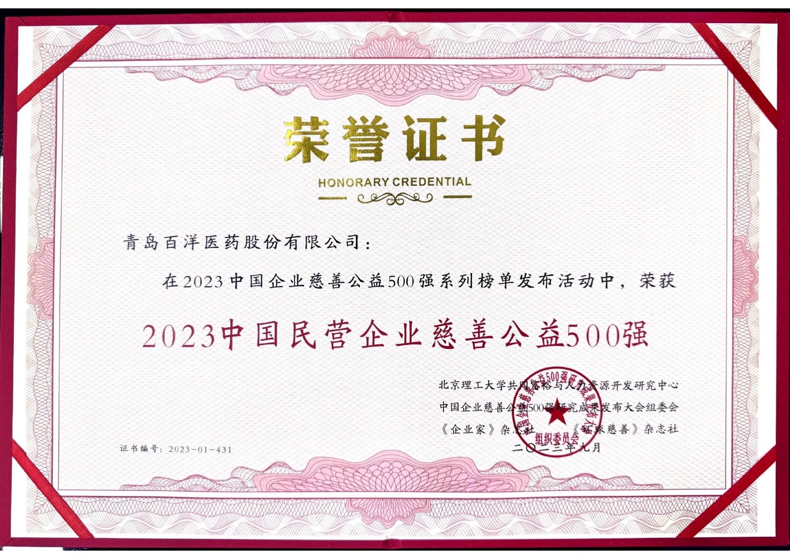 ±¾½ì´ó»áÓɱ±¾©Àí¹¤´óѧÅäºÏ¸»×ãÓëÈËÁ¦×ÊÔ´¿ª·¢Ñо¿ÖÐÐÄ¡¢ÖйúÆóÒµ´ÈÉÆ¹«Òæ500Ç¿Ñо¿Ð§¹ûÐû²¼´ó»á×éί»á¡¢º×±ÚÊÐÈËÃñÕþ¸®µÈµ¥Î»ÍŽáÖ÷Àí¡£´Ë´Î´ó»áÒÔ¡°²Æ²úÓëÔðÈΡª¡ªÆóÒµµÄ¼ÛÖµ¡±ÎªÖ÷Ì⣬ּÔÚÔö½øÖйú´ÈÉÆ¹«ÒæÊÂÒµ¡¢ÖйúÆóÒµ¸ßÖÊÁ¿Éú³¤£¬ÐγÉÒÔÒµÔØÉÆ¡¢ÒÔÉÆÐËÒµµÄÁ¼ÐÔÑ»·¡£»áÉÏÐû²¼µÄ¡° 2023 ÖйúÃñÓªÆóÒµ´ÈÉÆ¹«Òæ 500 Ç¿¡±ÏµÁаñµ¥ÏòÈ«Éç»áÖÜÈ«¿Í¹ÛչʾÁËÖйúÃñÓªÆóÒµ´ÈÉÆ¹«ÒæÐ³ɼ¨¡£